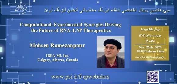 سی و هفتمین وبینار شاخه فیزیک محاسباتی انجمن فیزیک ایران به یک سخنرانی تخصصی اختصاص خواهد داشت. دکتر محسن رمضان‌پور از IDEA-ML Inc., Calgary, Alberta, Canada سخنرانی خود را با عنوان « Computational–Experimental Synergies Driving the Future of RNA–LNP Therapeutics » در روز چهارشنبه پنجم آذر ساعت ...