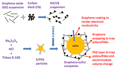 با به دام انداختن ذرات گوگرد (Sulphur) در پوششی از گرافین می توان یک ماده کاتدی ایجاد کرد که منجر به تولید نسل جدیدی از باتری های لیتیومی می شود. باتری هایی که قابلیت تأمین انرژی اتومبیل های الکتریکی را دارد.