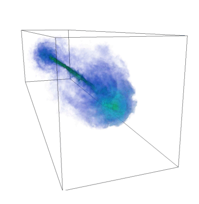 ووگت و واگنر تصاویراستریو را به عنوان ابزارهای سه بعدی مورد نظر خود انتخاب کردند و در مقاله شان مثال هایی از آن را ارائه کردند. در اینجا دو نمونه از تصاویر آنها بازسازی شده اند. شکل بالا نمونه ای از جت نسبیتی از یک هسته فعال کهکشانی است و تصویر پایین نمایی از درون یک اَبر شبیه سازی شده است.