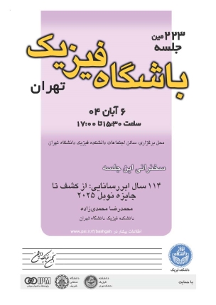 نشست دويست و بیست و سومین باشگاه فيزيک تهران روز سهشنبه ششم آبان ماه ۱۴۰۴ به صورت حضوري در سالن اجتماعات دانشکده فيزيک دانشگاه تهران برگزار ميشود. برنامه ساعت ۱۵:۳۰ با خبر آغاز و سخنران این نشست آقای دکتر محمدرضا محمدیزاده از دانشکده فیزیک دانشگاه تهران « ۱۱۴ سال ابررسانایی: از کشف تا جایزه نوبل ۲۰۲۵ » خواهند بود.استفاده از باشگاه فيزيک براي همهي علاقهمندان به علم فيزيک آزاد است.