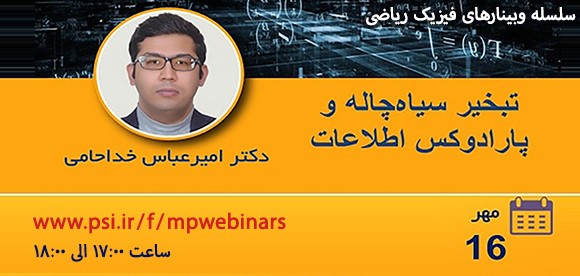 اولین وبینار فیزیک ریاضی به یک سخنرانی تخصصی اختصاص خواهد داشت. دکتر امیرعباس خداحامی از سخنرانی خود را با عنوان « تبخیر سیاهچاله و پارادوکس اطلاعات » در روز چهارشنبه شانزدهم مهر ساعت هفده به سمع و نظر علاقمندان خواهند رساند. درچکیده این سخنرانی آمده است: سیاهچالهها به عنوان اسرارآمیزترین اجرام ...