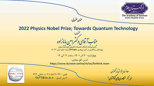 سخنرانی امین بابا زاده درباره نوبل فیزیک ۲۰۲۲ - سی آذرماهچهارشنبه ۳۰ آذرماه ۱۴۰۱ فرهنگستان علوم جلسه سخنرانی دکتر امین بابازاده دانش آموخته دانشگاه تحصیلات تکمیلی علوم پایه زنجان، پژوهشگر پسادکتری در گروه استاد Zeilinger (برنده جایزه نوبل فیزیک ۲۰۲۲) را با عنوان 2022 Physics Nobel Prize; Towards Quantum Technologyبه صورت مجازی برگزار میکند. اطلاعات ... [بیشتر بخوانید] |