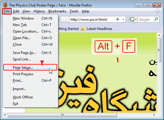ممکن است بسته به تنظیمات نرم افزار مرورگر خود در هنگام چاپ پوستر باشگاه فیزیک با مشکل عدم چاپ صحیح تصویر پوستر مواجه شوید. در این صورت لازم است تنظیمات زیر را بر روی مرورگر خود انجام دهید.
